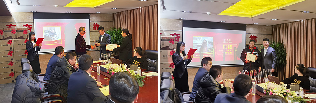 譚貴利總經理親自為十二名獲獎者頒發了榮譽證書、獎杯及獎品(韓國原裝進口的福庫電飯煲一臺)。